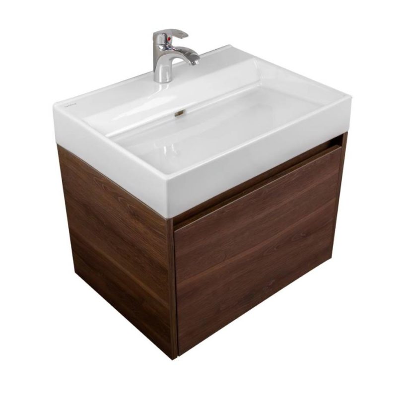 Elegante conjunto de baño que combina diseño minimalista y funcionalidad. Incluye mueble armado en acabado Siena, lavabo integrado en porcelana sanitaria con tecnologías avanzadas y grifería monomando de estilo contemporáneo. Ideal para renovar baños medianos con estilo y eficiencia.